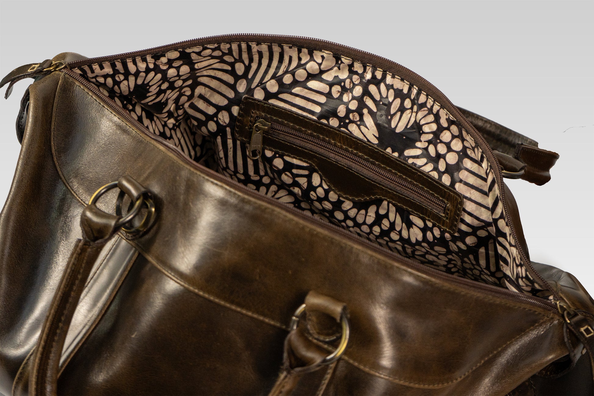 Designed for effortless travel on and off the course, the BEBE Golf Duffle blends refined luxury with everyday performance. Crafted from premium Italian leather, each duffle offers durability, structure, and understated elegance. Inside, a vibrant African Kampala textile lining adds cultural depth and unmistakable character. The smart size duffle transitions seamlessly from clubhouse to weekend travel, with thoughtful organization and optional personalization for a truly distinctive finish.